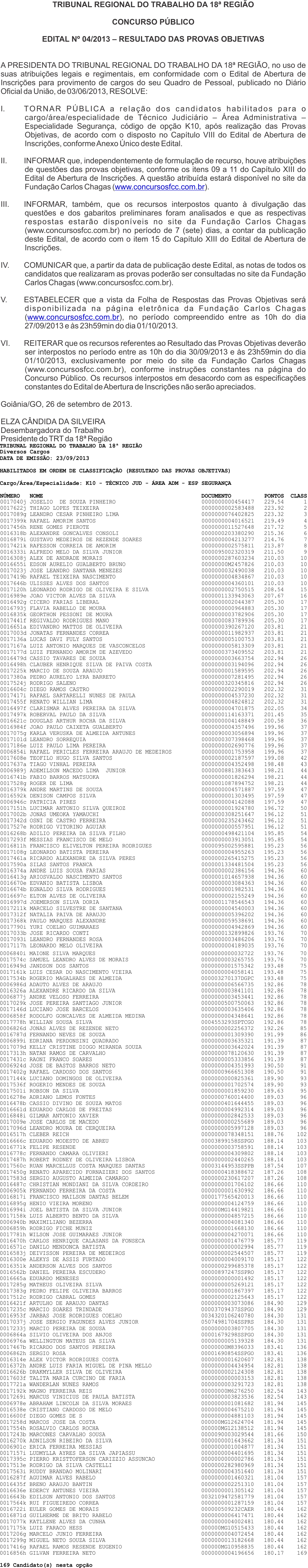 27/09/2013, Seção 3, página 159, o resultado das provas objetivas para o cargo